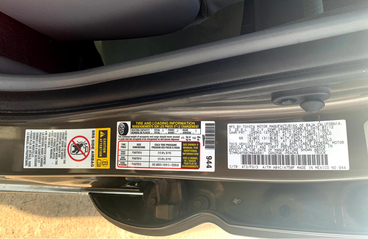 Child Safety Door Locks, Power Door Locks, Vehicle Anti-Theft, 4WD/AWD, ABS Brakes, Electronic Brake Assistance, Limited Slip Differential, Traction Control, Vehicle Stability Control System, Driver Airbag, Front Side Airbag, Passenger Airbag, Side Head Curtain Airbag, Air Conditioning, Tachometer, Tilt Steering, Tilt Steering Column, Telescopic Steering Column, Tire Pressure Monitor, Trip Computer, AM/FM Radio, CD Player, Subwoofer, Second Row Folding Seat, Cargo Area Tiedowns, Pickup Truck Bed Liner, Front Air Dam, Skid Plate, Splash Guards, Full Size Spare Tire, Steel Wheels, Power Windows, Power Adjustable Exterior Mirror, Interval Wipers